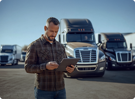 FMCSA-compliant logs, HOS tracking, and basic setup. Start free and get on the road in minutes.